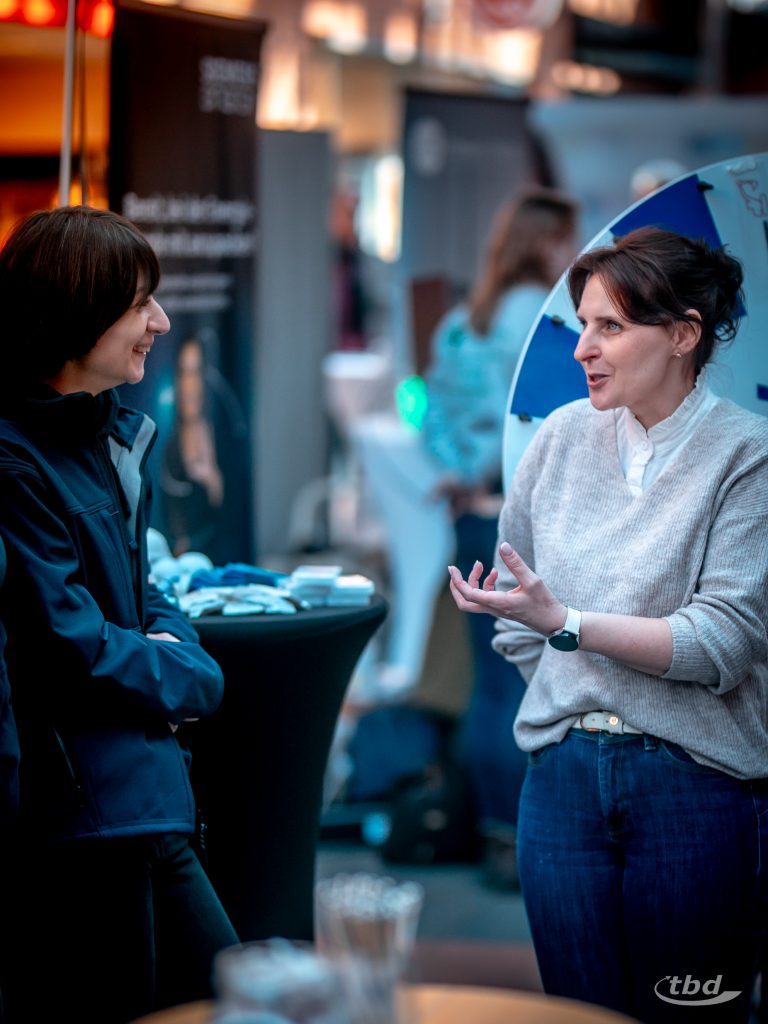 Im vorigen Jahr war Olha (links) selbst noch als Interessentin am Stand auf der „EnergyUp 3.0“ in Wilhelmshaven. In diesem Jahr war sie wieder dort – als Teil desTeams. Fotos: Ole Cordsen/TBD