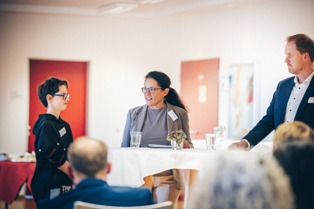 Panel-Talk Beginnt Demokratie im Klassenzimmer – oder vielleicht auch früher? Was kann getan werden, um Demokratiebildung in Schulen gezielt zu fördern? Im Rahmen der Preisverleihung lud der Arbeitskreis SCHULEWIRTSCHAFT zu einem Panel-Talk ein, der sich mit diesen Fragen beschäftigte. Cornelia Lüers (Gesamtredaktionsleitung Wilhelmshavener Zeitung/Jeversches Wochenblatt) diskutierte mit Steffen Friedrichs, Politiklehrer an der BBS Wittmund, und Michael Krüger, Schüler an der BBS Wilhelmshaven. Gemeinsam beleuchteten sie die Rolle von Schule und Ausbildung als Orte demokratischer Teilhabe und gesellschaftlicher Verantwortung. Anlass waren die alarmierenden Ergebnisse der Juniorwahlen, die deutlich machen: Politische Bildung muss früh ansetzen und junge Menschen aktiv einbinden. Die Teilnehmenden waren sich einig – Demokratie lebt von Mitgestaltung, und Schulen müssen Räume schaffen, in denen diese erfahrbar wird.