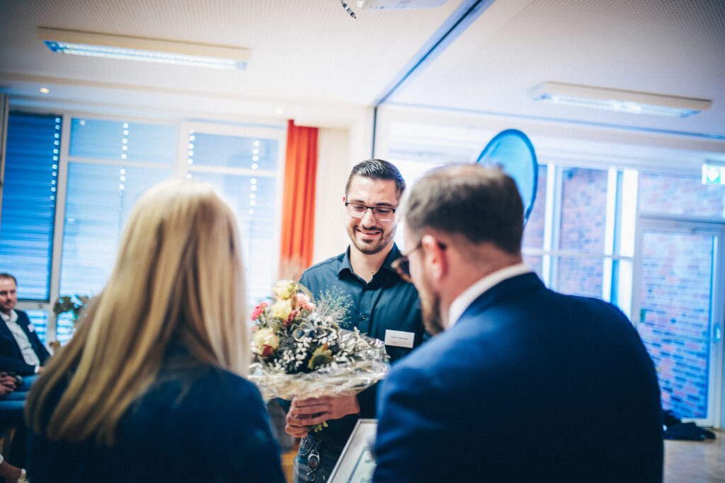 „Gib niemals auf und glaube an deine Träume“ – mit diesem Leitsatz hat Tobias Wäcken persönliche Herausforderungen und seine Ausbildung gemeistert. Diese Geschichten junger Menschen verdienen Anerkennung – besonders dann, wenn sie nicht nur mit hervorragenden Ergebnissen glänzen, sondern auch besondere Hürden meisterten und sich aktiv für unsere Gesellschaft einsetzen. Genau diese Verbindung aus fachlicher Stärke und sozialem Engagement stand gestern im Mittelpunkt der feierlichen Verleihung des Hans-Bretschneider-Preises 2025 an der BBS Wittmund. Der Arbeitgeber- und Wirtschaftsverband Jade e.V. würdigte in feierlichem Rahmen mit der Auszeichnung erneut drei Auszubildende aus der Jade Wirtschaftsregion und diskutierte in einem Panel-Talk auch Fragen rund um die politische Bildung.